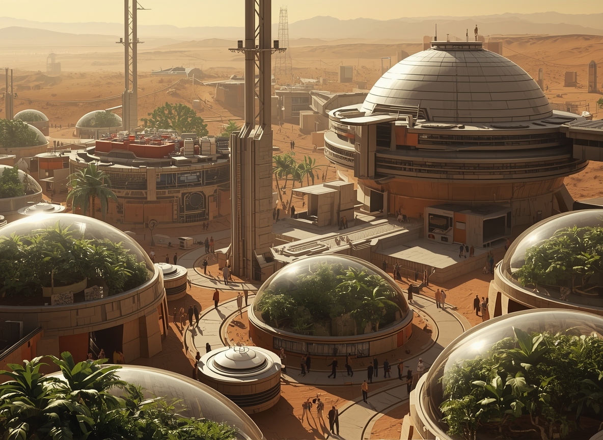 Ares Dominion is a self-sustaining Martian colony powered by hybrid nuclear and solar systems, focused on long-term habitation, planetary research, and terraforming technologies.